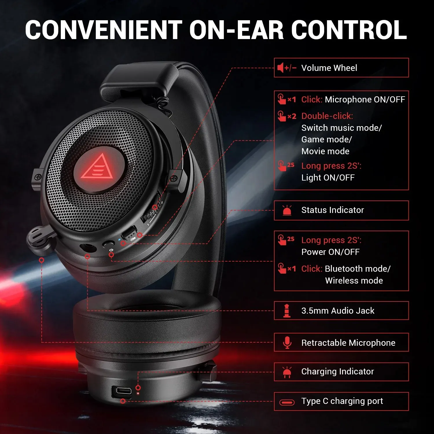 The EKSA E900 BT is equipped with an Environmental Noise Cancelling (ENC) microphone, which filters out background noise for clear communication during multiplayer games.