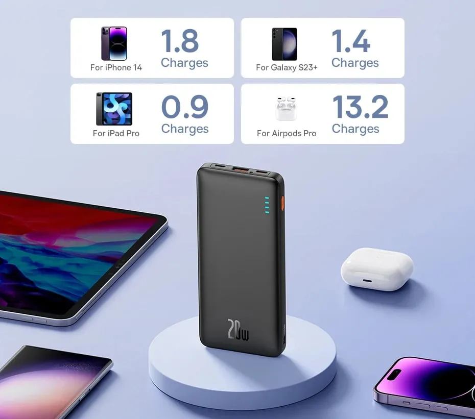 This power bank is lightweight and compact, making it ideal for travel and daily use. It easily fits in your pocket or bag.