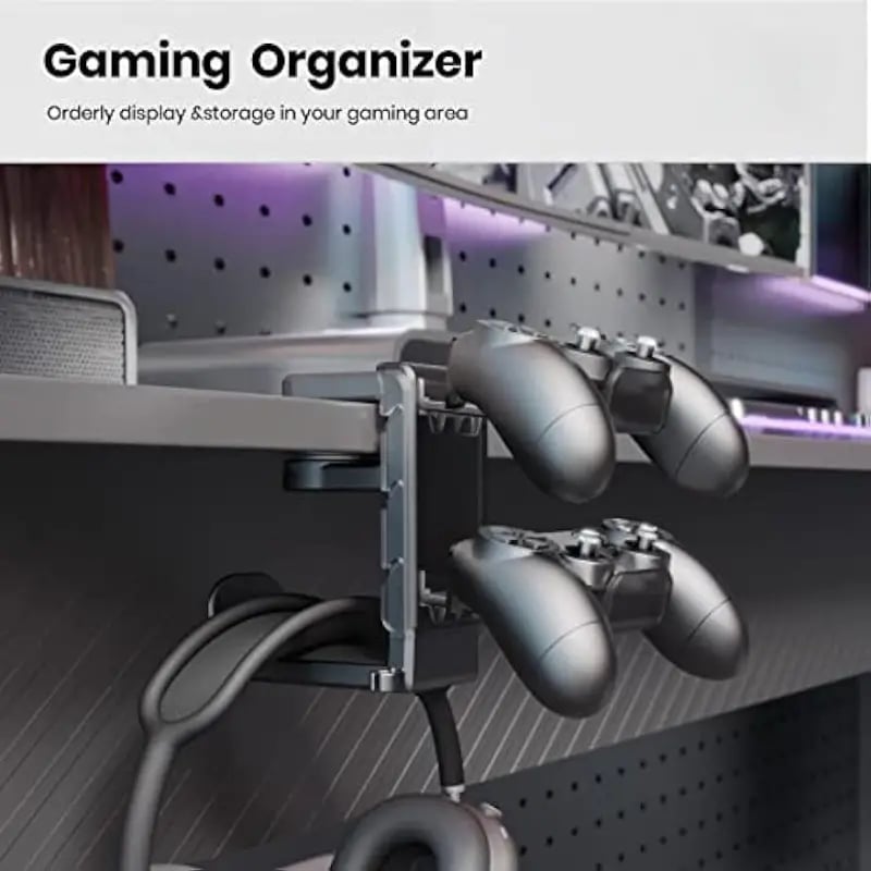 This holder is perfect for my gaming setup. It keeps everything organized and looks great.