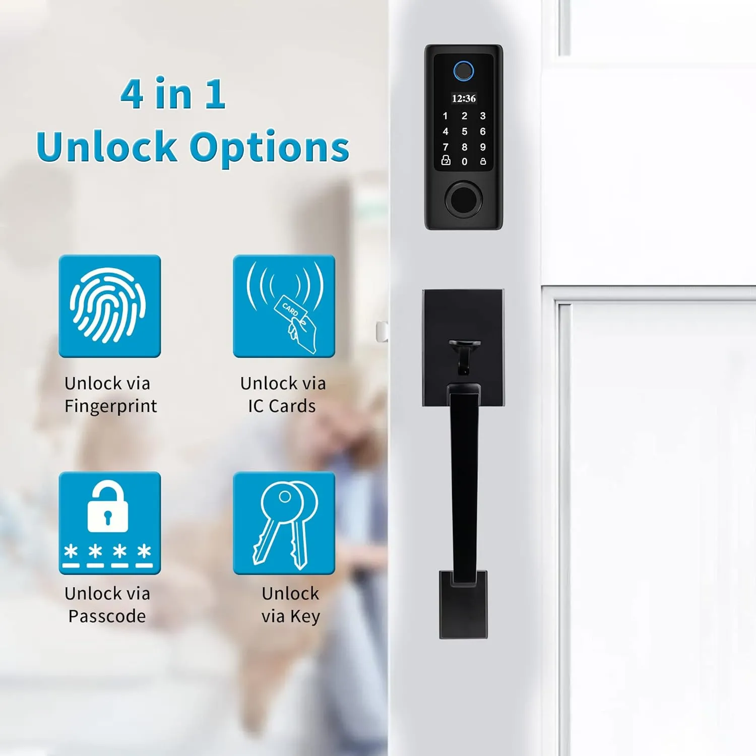 • This Smart Door Lock offers enhanced security with multiple access methods.